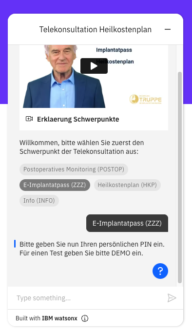 Die Anfrage ist möglich nach Eingabe des PINs des Patienten. Dadurch wird in unserer Datenbank die Anamnese und Krankengeschichte abgerufen.