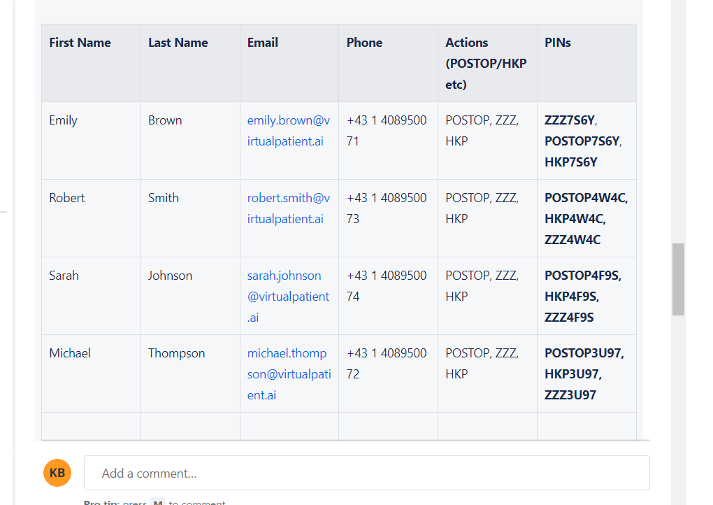 Die Anfragen (simuliert bezogen auf die Anamnese und KG) werden dann als blog post auf der Seite https://patient.smile.wien veröffentlicht.